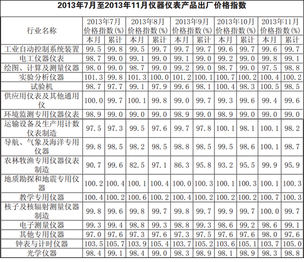 上海儀器儀表行業協會目前公布了2013年11月儀器儀表產品出廠價格指數。