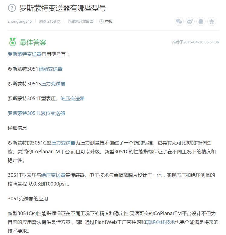 更多羅斯蒙特系列產(chǎn)品:羅斯蒙特3051、羅斯蒙特變送器、羅斯蒙特溫度變送器、羅斯蒙特壓力變送器等,詳細(xì)產(chǎn)品情況請?jiān)L問羅斯蒙特3051