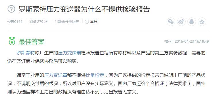 2、羅斯蒙特壓力變送器為什么不提供檢驗(yàn)報(bào)告?