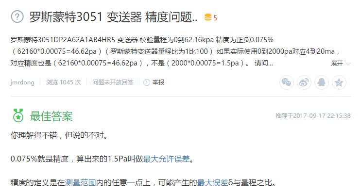 2、羅斯蒙特3051 變送器 精度問題(羅斯蒙特3051DP2A62A1AB4HR5 變送器 校驗(yàn)量程為0到62.16kpa