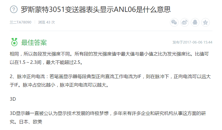2、羅斯蒙特3051變送器表頭顯示ANL06是什么意思?
