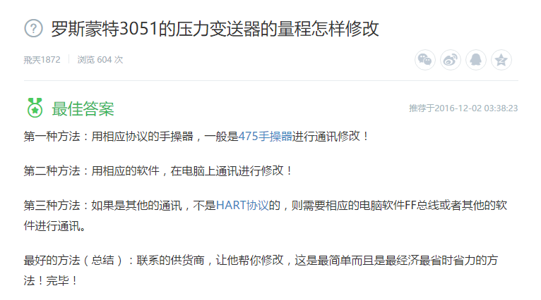1、羅斯蒙特3051的壓力變送器的量程怎樣修改?