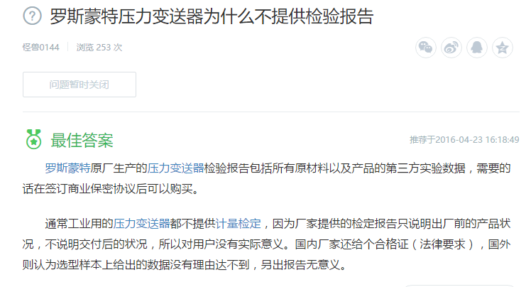 2、羅斯蒙特壓力變送器為什么不提供檢驗報告?
