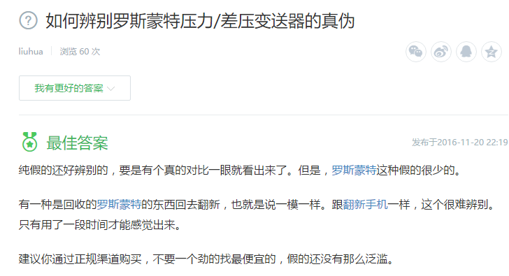 1、如何辨別羅斯蒙特壓力/差壓變送器的真偽?