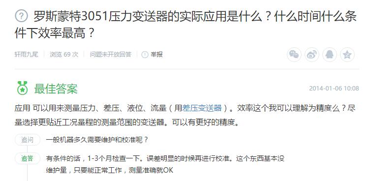 2、羅斯蒙特3051壓力變送器的實際應用是什么?什么時間什么條件下效率最高?