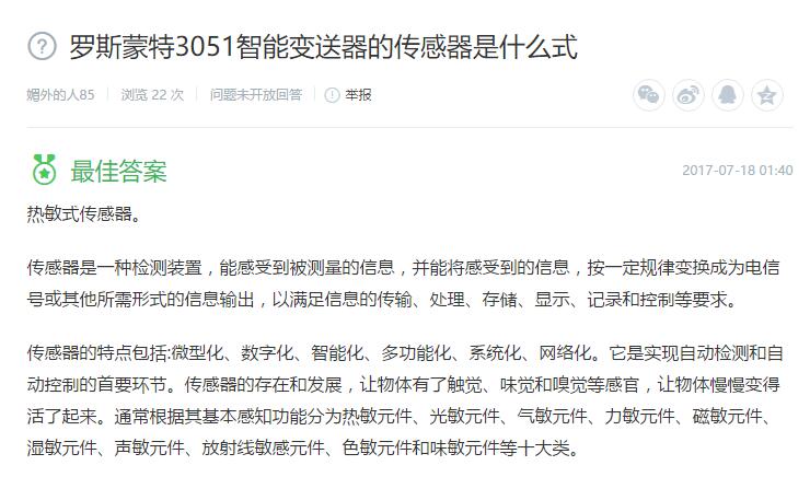 2、羅斯蒙特3051智能變送器的傳感器是什么式?