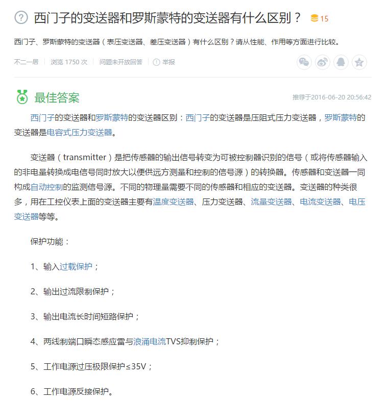 1、西門子的變送器和羅斯蒙特的變送器有什么區(qū)別?(西門子、羅斯蒙特的變送器(表壓變送器、差壓變送器)有什么區(qū)別?請(qǐng)從性能、作用等方面進(jìn)行比較。)