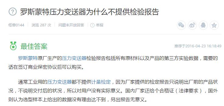 3、羅斯蒙特壓力變送器為什么不提供檢驗(yàn)報(bào)告?