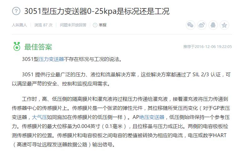 1、3051型壓力變送器0-25kpa是標(biāo)況還是工況