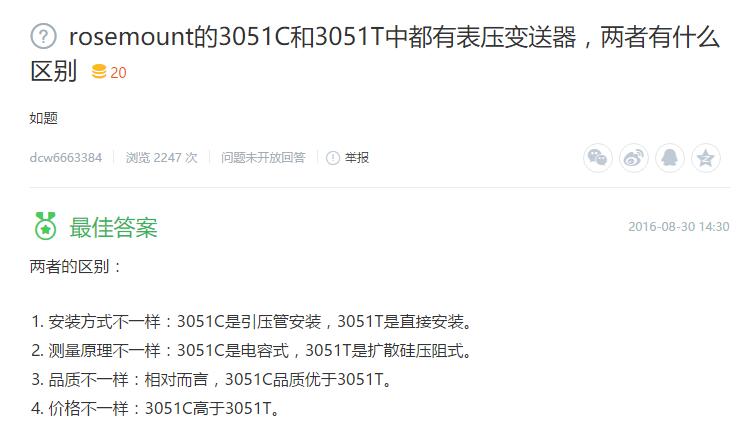 2、rosemount的3051C和3051T中都有表壓變送器,兩者有什么區(qū)別?
