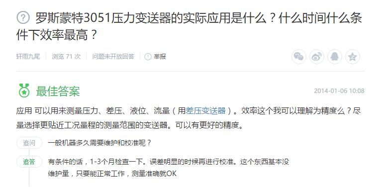 1、羅斯蒙特3051壓力變送器的實際應用是什么?什么時間什么條件下效率最高?