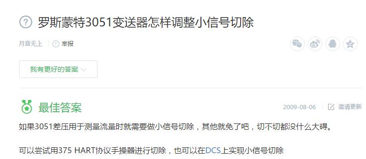 如果3051差壓用于測量流量時就需要做小信號切除,其他就免了吧,切不切都沒什么大礙。可以嘗試用375 HART協議手操器進行切除,也可以在上實現小信號切除