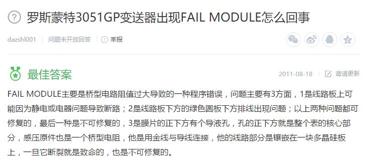 3、羅斯蒙特3051GP變送器出現FAIL MODULE怎么回事?