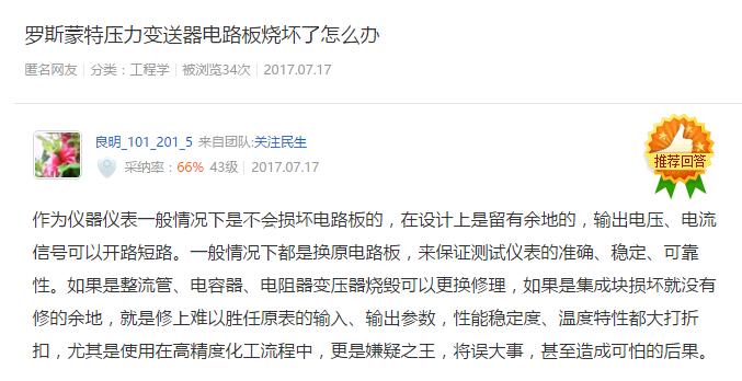 1、羅斯蒙特壓力變送器電路板燒壞了怎么辦?