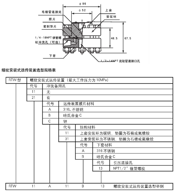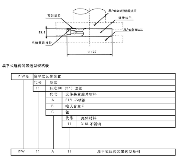 (零基準校驗范圍,參考條件下,硅油充液,316L不銹鋼隔離膜片)遠傳裝置是用于防止管道中的介質直接進入變送器里的壓力傳感器組件中,它與變送器之間是靠注滿流體的毛細管連接起來的。SLK3051DP-R智能遠傳差壓變送器用于測量液體、氣體或蒸汽的液位、密度和壓力,然后將其轉換為4~20mA DC信號輸出。SLK3051DP-R智能遠傳差壓變送器也可與HART手操器相互通訊,通過它進行設定、監控。